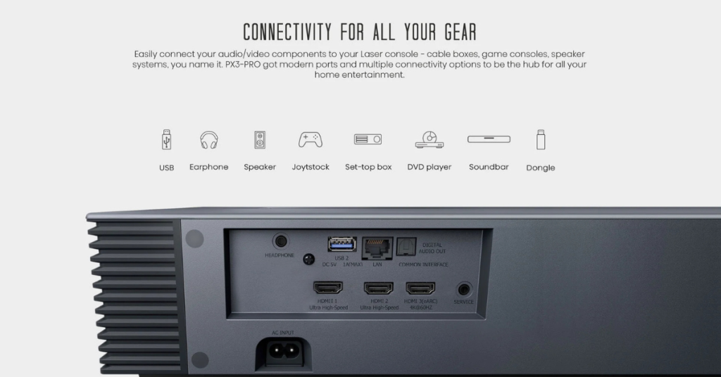 Hisense PX3-PRO+LTS120AKA Ultra Short Throw 4k Smart Triple Colour 80 to 150 in + 120 in ALR Screen
